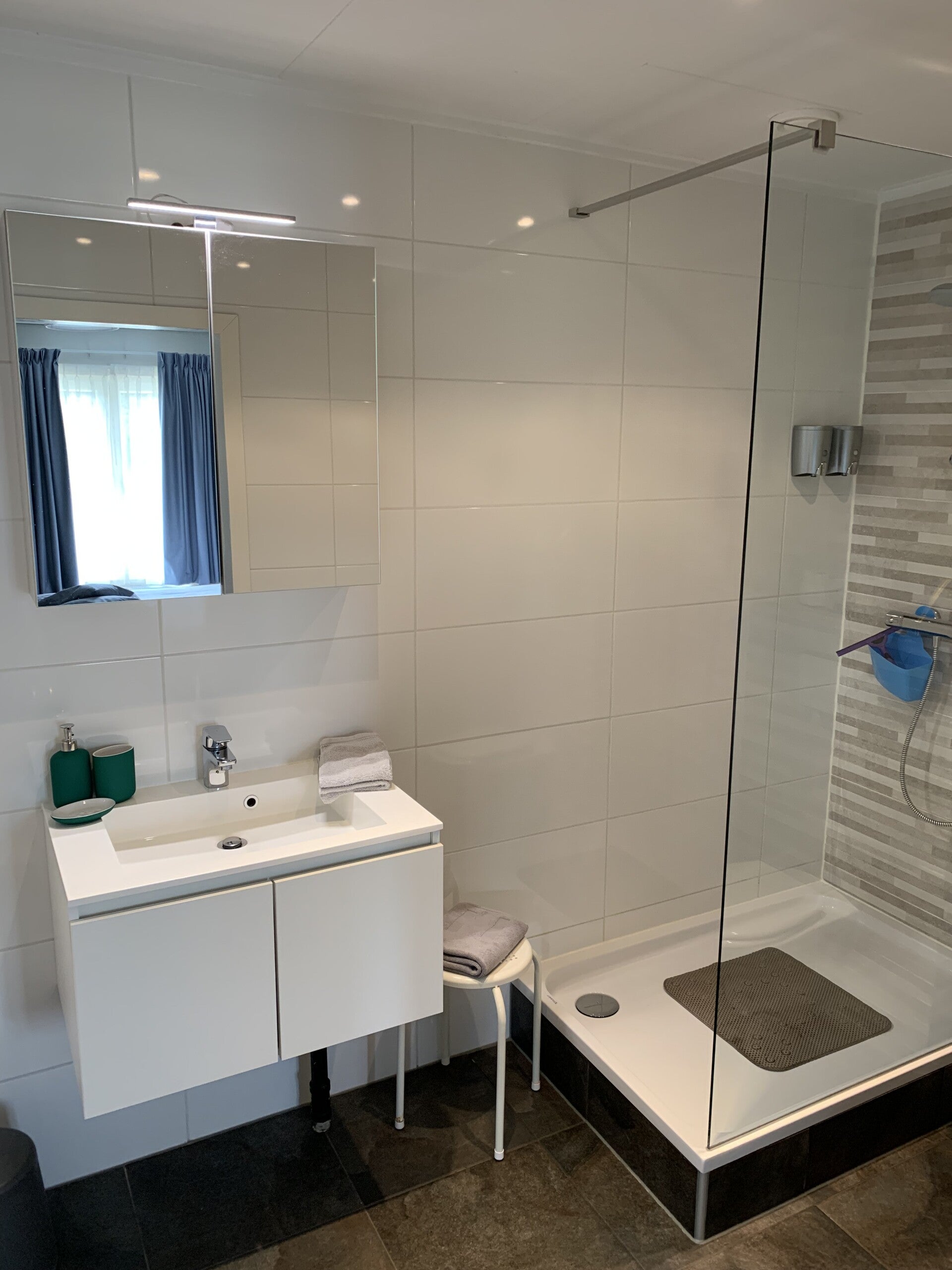 En-suite badkamer ingericht met: